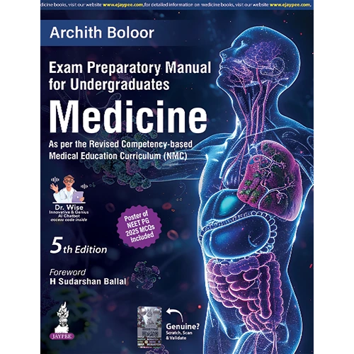 The 5th edition is thoroughly updated as per the CBME 2024 curriculum from NMC, offering a streamlined, exam-oriented approach with emphasis on high-yield, must-know concepts. Revised up to May 2025 with the latest management protocols and national guidelines, it combines conceptual clarity with clinical relevance—ideal for NEET PG, INI-CET, and FMGE aspirants. Rich visuals including clinical photographs, ECGs, and radiographs, along with comparative tables, enhance understanding and recall. It also includes new chapters on AETCOM, Palliative Care, and the Physician’s Role in the Community, making it both a textbook and a ready-to-use revision tool.